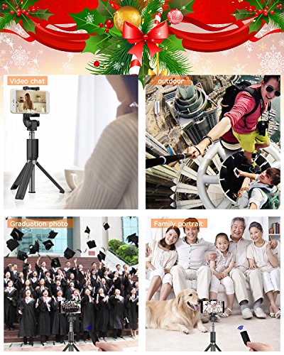 Multiple angle Taking Photo: il Bluetooth selfie stick morsetto telefono può ruotare di 360 ° e la testa del bastone selfie può SWAG 225 ° avanti e backward. potete Revolve e scattare foto in direzione orizzontale o verticale come ti piace.
