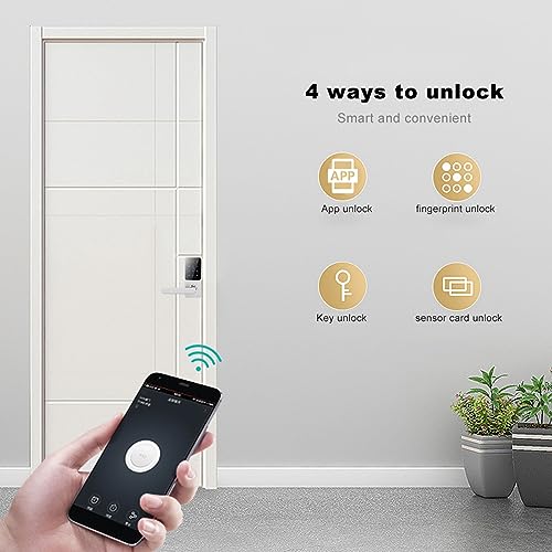 Bluetooth Smart Door Lock, Fingerprint Password Lock, Remote Control Doorlock, Intelligent Electronic Lock with 4 Door Open Mode/Remote Control/Sharing Time-Limited Password
