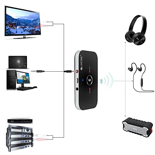 Bluetooth Trasmettitore Ricevitore 2 in 1 Wireless Stereo Audio trasmettitore e ricevitore con 3,5 mm Jack e batteria integrata per casa auto altoparlante impianto Musica Streaming Sound Sistema di altoparlanti cuffie TV PC MP3 MP4 - Nero