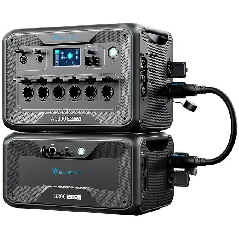 100% modulare, è possibile collegare fino a 4 moduli di B300 Ingresso solare da 2400W Inverter ad onda sinusoidale pura da 3000W Incredibile input rate di 5400W Disponibile connessione a 240V Backup di energia elettrica per tua casa (24/7) 2 anni di garanzia senza preoccupazione Espandi La Potenza BLUETTI AC300 è modulare al 100% e supporta fino a 4 moduli batteria B300 (3.072Wh per modulo) fino a raggiungere un'incredibile capacità totale di 12.288Wh! Soddisfa le necessità di base della tua famiglia per GIORNI durante le emergenze o le interruzioni di corrente! Ingresso Solare Da 2400W E' ora di collegarsi alla vita solare a tempo pieno! BLUETTI AC300 è ora in grado di ricevere 2.400 watt di input di ricarica solare senza rivali. Con l'avanzato controller MPPT di BLUETTI, puoi ricaricare un modulo batteria B300 (3.072 Wh) in 1 ora e mezza, solo con il sole! Inverter a Onda Sinusoidale Pura Da 3000W Confezionato con un inverter a onda sinusoidale pura da 3000 watt e in grado di