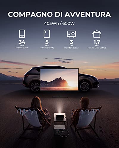 [Ricarica Rapida di 1 Ora] - L'AC60 si ricarica completamente in 1 ora tramite una presa di corrente a un massimo ingresso 600W. Può essere ricaricato anche tramite pannello solare e auto.