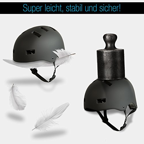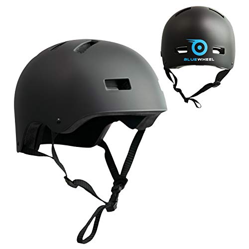 Bluewheel - Casco H30 per hoverboard, skateboard, mountain bike, bicicletta, struttura a 3 strati per maggiore sicurezza e comfort, sistema di aerazione, design nero opaco adattabile, 50-56 cm e 56-62 cm, S. 50 - 56 cm