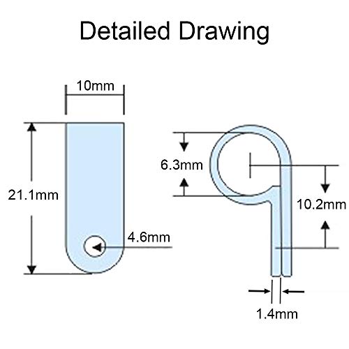 La dimensione del clip del cavo di tipo R: lunghezza: 21,1 mm, larghezza: 10 mm, diametro 1/4 pollici, adatto per la maggior parte dei cavi.