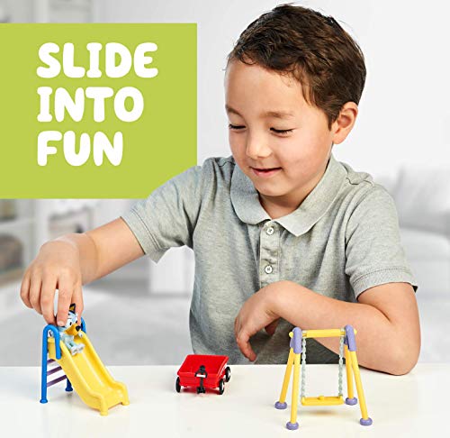 Bluey Park Play Set Articulated 2.5 Inch Action Figure and Three Piece Park Playset with Swing, Slide and Ridable Wagon Official Collectable Toy...