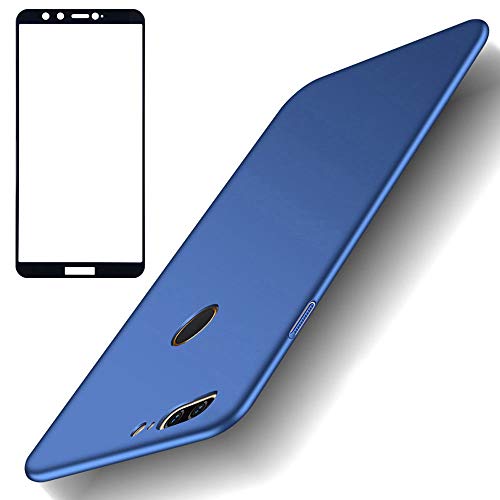 BLUGUL Cover Honor 9 Lite + Vetro Temperato, Ultra Sottile, Completamente Protettivo, Sentimento di Seta, Pellicola Protettiva e Duro Custodie for Huawei Honor 9 Lite Blu