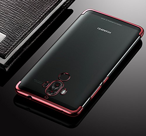 BLUGUL Cover Huawei Mate 9, Electroplating Coloring, Ultra Sottile, Morbida TPU Silicone Case, Trasparente Chiaro Custodie per Mate 9 Rosso