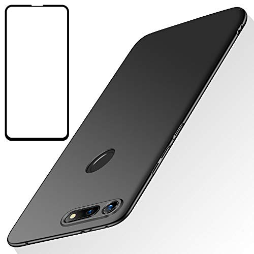 BLUGUL Cover + Vetro Temperato per Honor View 20, Ultra Sottile, Completamente Protettivo, Sentimento di Seta, Pellicola Protettiva e Duro Custodie per Honor View20 Nero