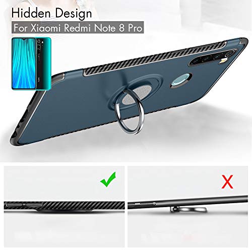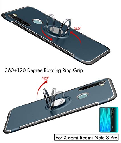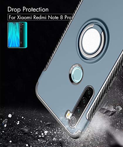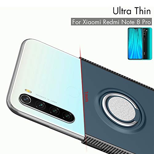 BLUGUL Cover per Xiaomi Redmi Note 8 PRO, Supporto per Anelli Girevole a 360 Gradi, Compatibile con Supporto Auto Magnetico, Custodie Case per Redmi Note 8 PRO Argento