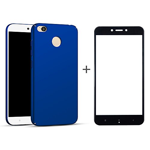BLUGUL Cover Xiaomi Redmi 4X + Vetro Temperato, Ultra Sottile, Completamente Protettivo, Sentimento di Seta, Pellicola Protettiva e Duro Custodie for Redmi 4X Blu