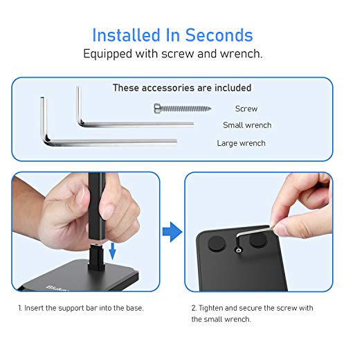 Design regolabile ed ergonomico: può essere facilmente regolato a (0 ° - 110 °) angolo e altezza (185-240 mm) a mano. Il braccio in alluminio di altezza superiore fornisce un comodo angolo di visione che aiuta a fissare la postura e ridurre la tensione di collo e schiena.