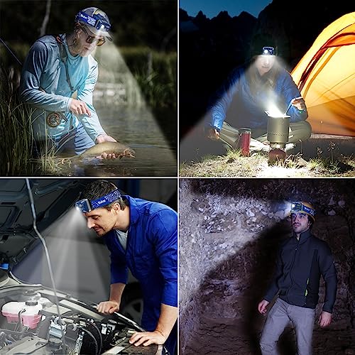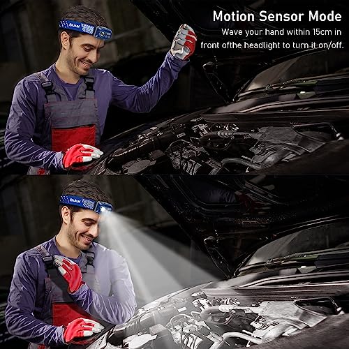 Blukar Torcia Frontale LED Ricaricabile, Super Luminoso Lampada Frontale con Sensore Movimento,7 Modalità di Illuminazione,IPX5 Impermeabile Lampada da Testa per Campeggio/Emergenza/Pesca