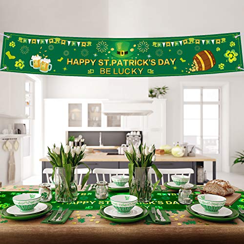 Come sfondo di festa di San Patrizio: la decorazione di un set di banner "Happy St. Patrick Day/ Be lucky" è incredibile per dare più atmosfera alla festa di San Patrizio