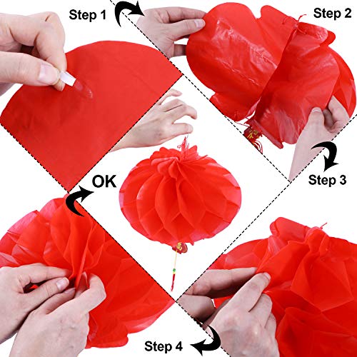 Contenuto della confezione: 16 pezzi in totale, include 10 pezzi di lanterne a nido d'ape rosse a nido d'ape, 4 pezzi di ghirlande appese fu e 2 lanterne a nido d'ape quadruple a nido d'ape rosse (4 lanterne lineari verticali)