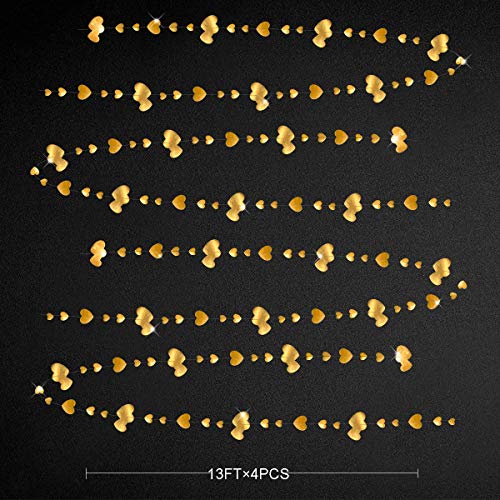 ❤ CONTENUTO DEL PACCHETTO - 4 confezioni di kit di decorazioni per San Valentino con ghirlanda di cuori d'oro appesi, ogni corda misura 13 piedi / 4 metri.