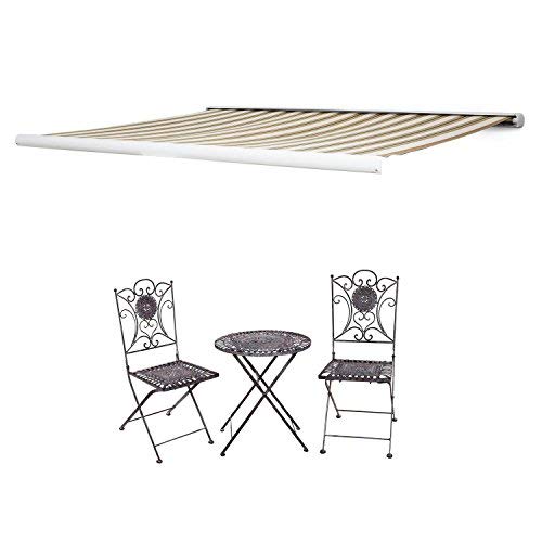 Blumfeldt Capri-Royale Tenda a Caduta Motorizzata e Cassonata da Veranda, Balcone, Giardino (4 x 3 Metri, 280 g/m², Idrorepellente, LED, inclinazione 60-90°, Telecomando) Verde/Beige