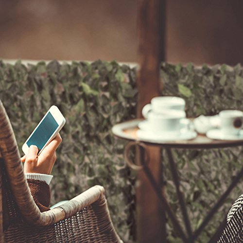 Il recinto con i suoi 3 m di lunghezza e 1,5 m di altezza viene semplicemente srotolato e fissato con gli appositi giunti flessibili (inclusi in consegna) per nascondere e proteggere terreni, parapetti o inferriate. La copertura verde formata da circa 2700 foglie protegge da sguardi indesiderati.