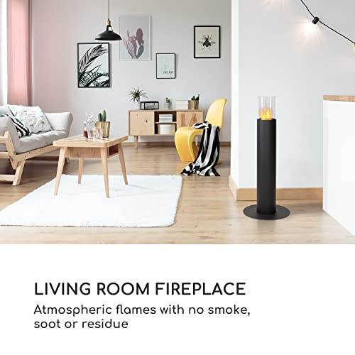 Blumfeldt Fiamme Pila - Camino a Etanolo, Bruciatore in Acciaio Inox con 0,5 l di Volume, Fino a 5 h di Combustione Inodore e Senza Residui, Dispositivo di Spegnimento Integrato, Copertura, Nero