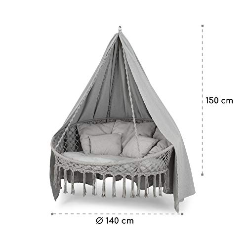 Blumfeldt Ischia - Poltrona Pensile, Rilassante Dondolio, al Chiuso e all'Aperto, max. 300 kg, Grandi Cuscini, Effetto Macramè, 5 Cuscini, Policotone, Rivestimenti Resistenti agli UV, Grigio Chiaro
