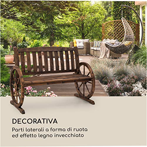 RUSTICO: a forma di due ruote di carro, i supporti laterali della panca da giardino trasmettono l'atmosfera accogliente di un alpeggio illuminato dal sole e portano un tocco rustico a casa.