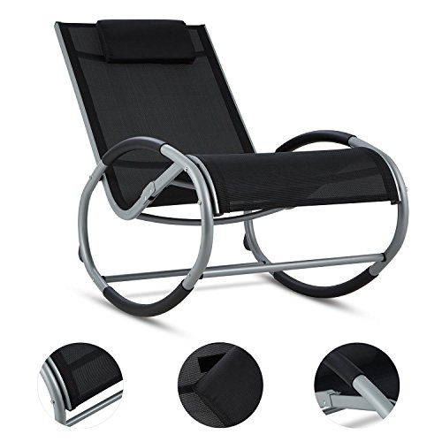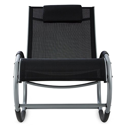 Blumfeldt Retiro Poltrona Sedia A Dondolo (Alluminio, Poliestere, Fermi Sicurezza Contro Ribaltamento, Poggiatesta, Comfort) Nero