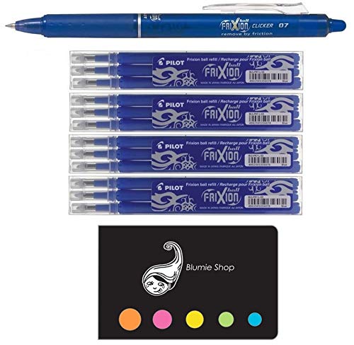 Blumie Shop - Lotto di penne Pilot “Frixion Ball” a inchiostro blu + 4 confezioni da 3 ricariche + gomma Frixion + penna a sfera