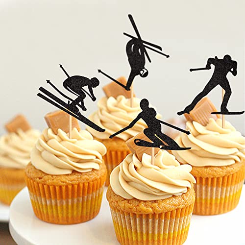 Blumomon 28 decorazioni per cupcake per lo sci, per lo sci, per le torte, per lo sport, per lo sci, per le feste, per lo sport e le feste