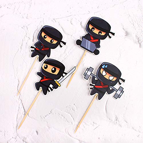 Blumomon Ninja Cupcake Toppers Ninja Warrior Cake Picks per bambini Ninja Tema Decorazioni per feste di compleanno Baby Shower Cake Decorazioni Confezione da 24