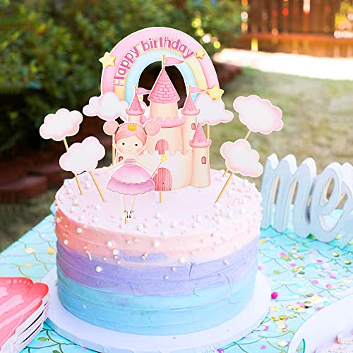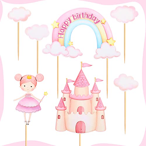 Blumomon 7 pezzi Baby Girl Cake Toppers Kit Pink Castle Rainbow Cloud Baby Shower Cake Decorazioni per ragazze bambini baby shower Birthday Party Supplies