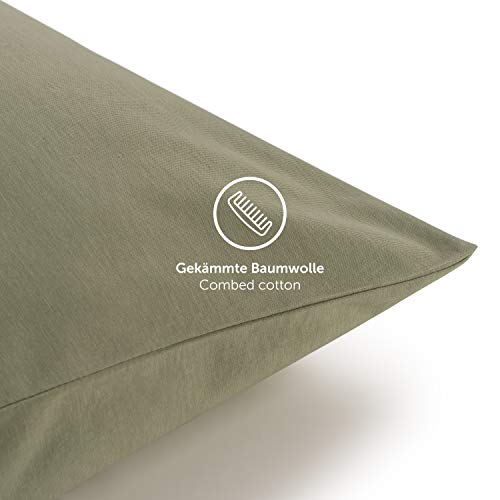 Blumtal Federe Cuscini Letto Matrimoniale Cotone - Federe Cuscini 80x80-100% Cotone, Set di 2 Federe in Jersey con Cerniera, Federa certificate Oeko-Tex, Federe Cuscino Letto - Verde Oliva