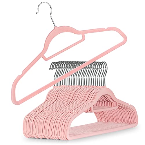 Blumtal Grucce Appendiabiti in Velluto, Grucce Vellutate, Grucce Salvaspazio nell'Armadio, Appendini Salvaspazio con Gancio Rotante 360°, Stampelle Armadio per Pantaloni, Rosa, 100 Pezzi
