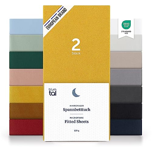 Blumtal Lenzuolo con Angoli Una Piazza e Mezza in Microfibra PREMIUM, Lenzuola 1 Piazza e Mezza, Lenzuola Una Piazza e Mezza con Angoli Sotto, 120 x 200cm,Senape, 2 Pezzi