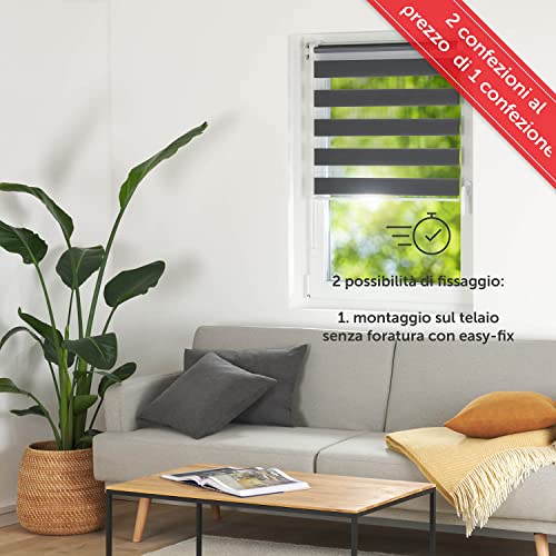 Blumtal Tende a Rullo per Interni Semi-Oscuranti, Doppio Strato Regolabile con Catenella, 85 x 155cm, Bianco - Nero, 2 Pezzi