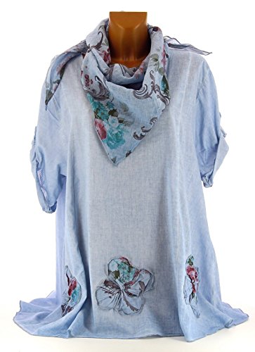 Blusa Camicia + sciarpa boemo Cotone Blu - MARIETTE