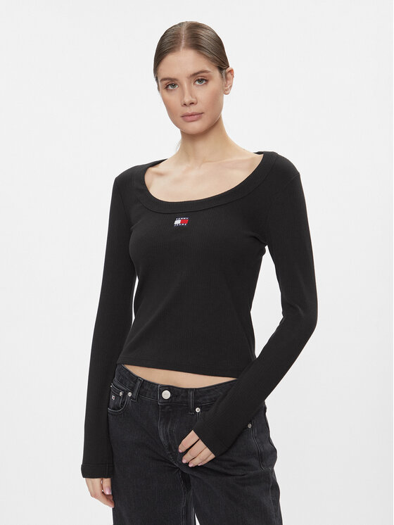 Tommy Jeans Blusa Tjw Slim Badge Rib Tee Ls DW0DW17397 Nero Slim Fit