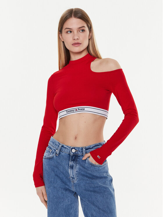 Tommy Jeans Blusa Tjw Logo DW0DW14893 Rosso Slim Fit