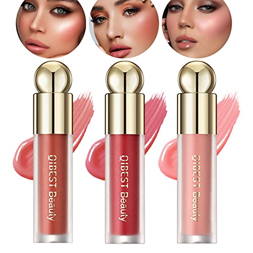 Blush liquido 3 in 1 per guance, occhi e labbra, mousse di velluto altamente pigmentato leggero traspirante, a lunga durata, a prova di sbavature, impermeabile, dall'aspetto naturale(3 pezzi)