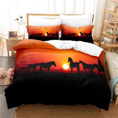 BLuvos Copripiumino Matrimoniale Cavallo Marrone Copripiumino Matrimoniale 260x240 e 2 Federe 50x75 Copripiumino 3D con Cerniera 110g/㎡ Microfibra Regalo Uomo Compleanno