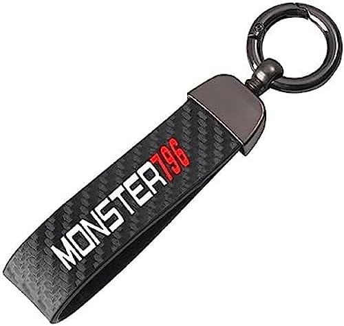 BLuvos Portachiavi Moto in Fibra di Carbonio Portachiavi con Corda in Pelle,Adatto per Ducati Monster796 Monster-796 Monster 796 con Accessori D-Ring Anti-smarrimento