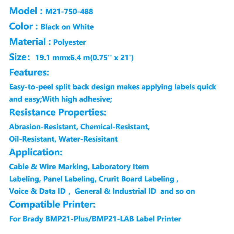 Bmp21 M21-750-488 Label Tape Black On White Nylon film Compatible for Brady BMP21 Plus ID PAL LABPAL Label Maker