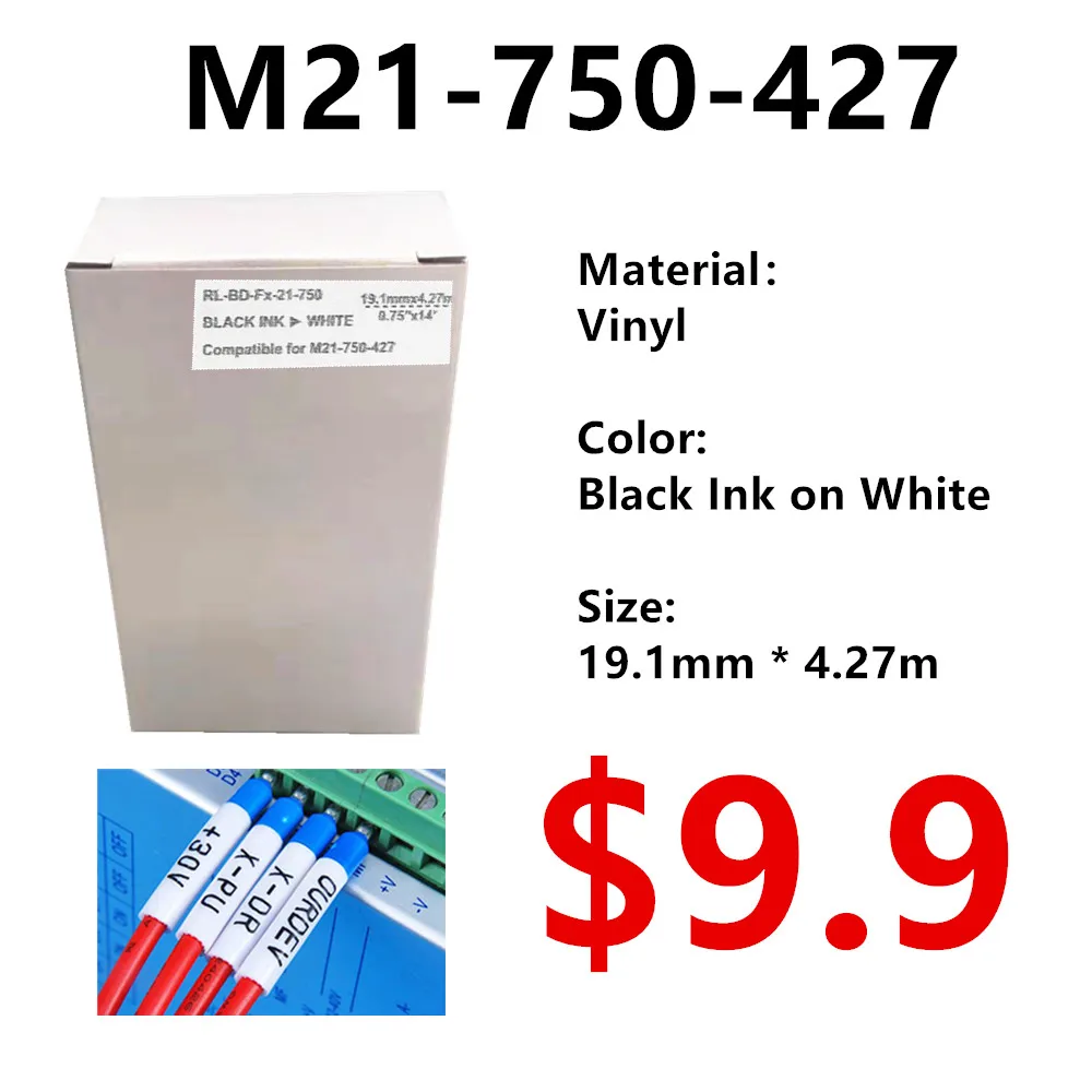 Bmp21 M21 750 427 Vinyl maker Label Ribbon Black On White BMP21 PLUS bmp 21 Printer Black On White M21-750-427 19.1mm * 4.27m