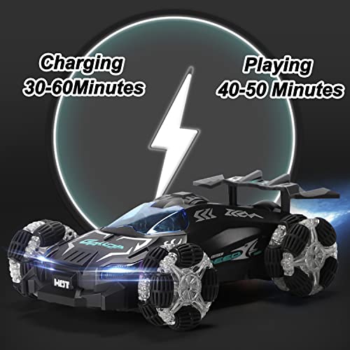 BMSARE Macchina Telecomandata, RC Auto Luce LED e Spray, 2,4GHz 360° Rolling Deriva Auto, 4WD 20km/h High Speed RC Car Auto con Ricaricabile per Bambini Regalo Compleanno