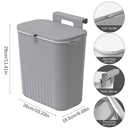 Bncxdc pattume tecnologico, pattumiera differenziata, Cestino per rifiuti da cucina con coperchio, bidone della spazzatura appeso per il riciclo domestico, 9.5 litri, Grigio