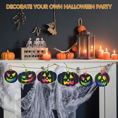 【Facile da Usare】pittura di zucca di halloween, basta usare un bastoncino di legno per disegnare un tratto sulla superficie nera, creare liberamente, puoi mostrare i colori dell'arcobaleno. Allo stesso tempo, puoi anche disegnare motivi e infine appenderli con corde colorate.