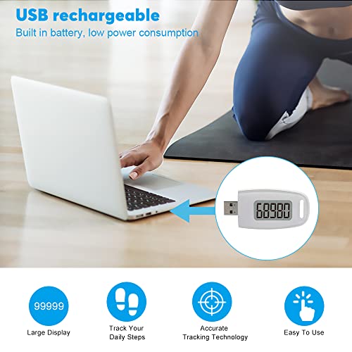 【Connettore USB per una Facile Ricarica】Questo contapassi si ricarica facilmente con qualsiasi adattatore USB o computer, senza bisogno di un cavo o di una base di ricarica. Una carica completa di 2,5 ore consente un'autonomia di 4~5 mesi. Con cinturino, può essere appeso al collo o messo in tasca o in borsa.