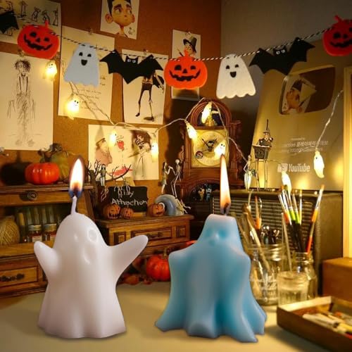 BNGXR 2 pezzi Stampo per Candele in Resina Epossidica a Forma di Teschio, Halloween 3D Teschio Fantasma Stampo in Silicone per Versare Candele, per Sapone Fatto a Mano, Aromaterapia (A+B)