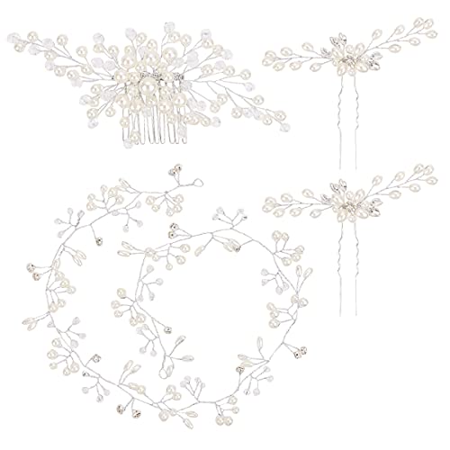 ♥【Set di Accessori per Capelli Lucidi】Il set di accessori per capelli con perle include un pettine per capelli, una fascia per capelli con perle lunga 50 cm e 2 capelli perle mollette di U. Puoi indossare questi pettini e molletti insieme o separatamente in base alle tue preferenze e occasioni per aggiungere alla tua bellezza.