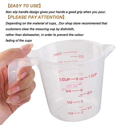 【Ampiamente usato】 Il misurino trasparente è un assistente ideale per cucinare e cuocere al forno e può essere utilizzato per misurare acqua, miscele, succhi, ecc. E facile da pulire.