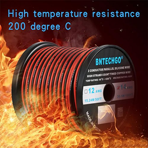 BNTECHGO 14 AWG rosso nero 2 conduttori filo di silicone parallelo, ultra flessibile morbido, facilmente separabile, facile da usare.