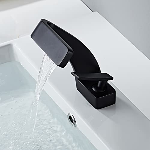 BOAOTX, rubinetto moderno a cascata, per lavabo, rubinetto monocomando, rubinetto da bagno in ottone (nero opaco)