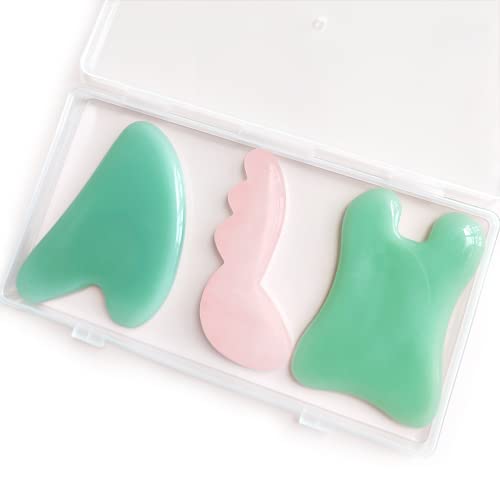 Gua Sha Board Strumenti Massaggio, Alled Gua Sha Strumento Facciali Set Scraping Stone 3 Tipi Pietra Naturale Giada Gua Sha, Gua Sha Originale Cristallo per Cura Della Pelle Facciale SPA (Set 1)